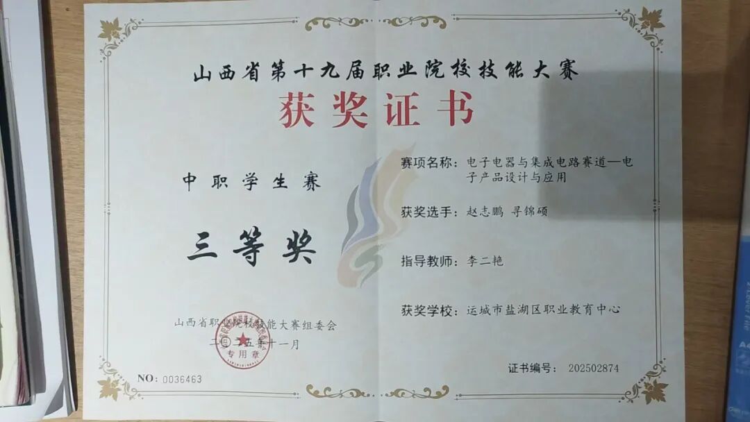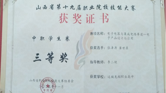 11月4日,山西省第十八届职业院校技能大赛机电技术应用专业 “电子产品设计与应用”赛项在山西省华北机电学校举行,全省职业院校的100多名选手参加了比赛。选手来自全省二十多个学校,可谓高手如云,经过多天的激烈角逐,李二艳老师指导的学生分别荣获学生个人赛二等奖与三等奖。